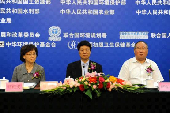 在启动仪式上,环境保护部副部长李干杰,卫生部副部长陈啸宏代表“宣传周”主办单位分别致辞。李干杰副部长在讲话中指出,2008年联合国环境规划署发起的“绿色经济倡议”得到国际社会的积极响应;坚持走绿色发展的道路,既是加快转变经济发展方式、破解日趋强化的资源环境瓶颈制约的必然要求,又是增强可持续发展能力、提高生态文明建设水平的战略选择。陈啸宏副部长在讲话中指出,1992年联合国在《里约环境与发展宣言》中宣告,人类是可持续发展关注的中心,他们有权与大自然和谐相处,享受健康和创造财富的生活。绿色经济是促进可持续发展目标实现的更具包容性的发展方式;绿色发展可为增进健康、减少环境健康风险、支持抗击非传染性疾病及许多贫穷疾病提供多种途径。