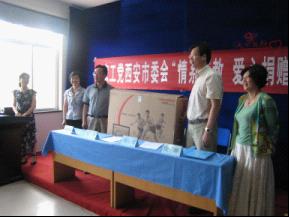 “六一”国际儿童节前夕(5月29日),农工党西安市妇女工作委员会组织部分委员和机关干部在西安口语交际专修学校就特殊教育情况进行调研,并开展“情系特教、爱心捐赠”活动。活动由张明副主委主持,市委会副主委、妇委会主任周引荣代表市委会讲话,我会长安区支部副主任、西安现代医疗管理集团董事长、现代妇产医院院长张琳向在校的孩子们捐赠了一台42寸平板液晶电视机,部分妇委会委员和机关干部20余人参加了活动。
