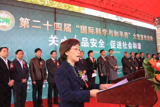 2012年11月11日上午,湖北省武汉市汉口百步厅社区广场人头攒动、热闹非凡,由农工党中央、“国际科学与和平周”中国组委会和农工党湖北省委会共同主办的第二十四届“国际科学与和平周”活动启动仪式在这里隆重举行。活动围绕“关心食品安全、促进社会和谐”的主题,大力宣传食品安全法,深入普及食品安全知识,倡导健康的生活理念和生活方式,得到民众的广泛关注和参与。