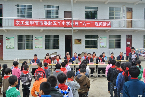 为更好地贯彻落实习近平总书记对毕节试验区工作的重要批示精神,5月26日,在“六一”国际儿童节到来之际,受毕节市政协副主席、农工党毕节市委会主委辜康乐委托,农工党毕节市委会副主委唐鹏程、庞小林率机关职工和部分党员赴大方县猫场镇五丫小学开展“六一”慰问活动,让孩子们欢度自己的节日。
