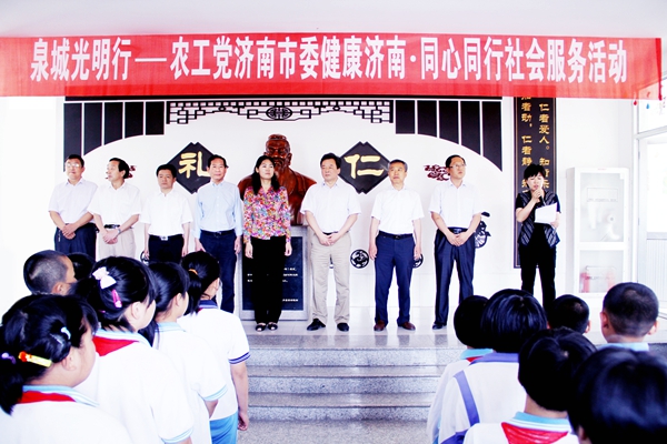 2014年6月4日上午,农工党济南市委会在西营镇石岭小学开展了“泉城光明行”——“健康济南·同心同行”社会服务活动。济南市人大常委会副主任、农工党山东省委会副主委、济南市委会主委段青英,中共济南市委统战部副部长张鹏出席活动。
