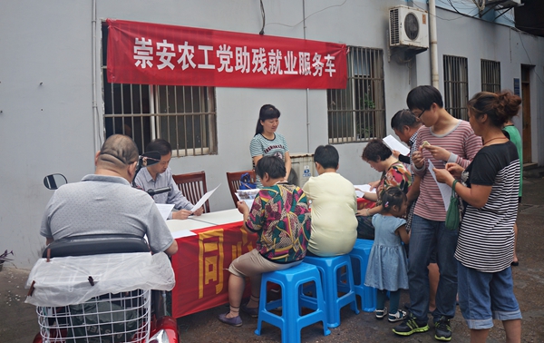 2014年6月27日,位于江苏无锡广丰新村社区的广瑞路街道“慈善爱心大院”热闹起来了,社区许多残疾人、低保户和下岗失业人员都来了,原来是农工党无锡市崇安区基层委员会的“助残就业服务车”开进了大院,专门量身定制、送需上门,为就业困难群体提供切实帮助。