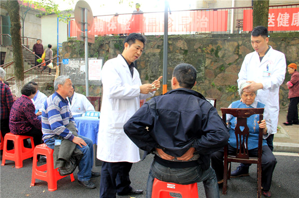 农工党市直三支部发挥综合支部的特点,联合益民椎肩盘专科医院、中心医院、市中西皮结合医院等单位的党员为社区群众进行体检,设有内科、中医科、疼痛科等,免费测量心电图、血压、血糖等。
