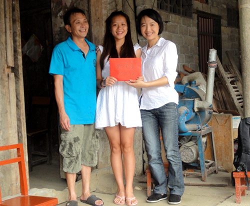 最后大家来到了贫困户许爱红家,她家里两个孩子,大女儿多才多艺,能文能舞,曾经代表全乡出战两县篮球联赛并获胜,现在即将高中毕业,考取了艺术院校,但因家中无法负担高额学费,原以为自己将与梦寐以求的院校失之交臂,当收到这份沉甸甸的7000元捐助款时,一家人都热泪盈眶,感叹终于可以圆了女儿的大学梦。