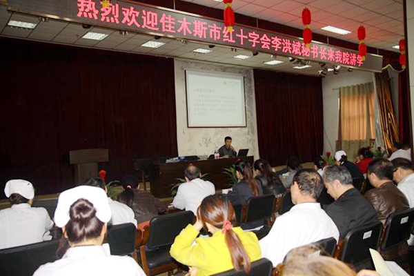 2015年10月25日,农工党佳木斯市前进区委会主委梁丽君及农工党前进区会委委员、佳木斯市红十字会秘书长、急救专家李洪斌到黑龙江农垦神经精神病防治院进行救护知识现场培训。