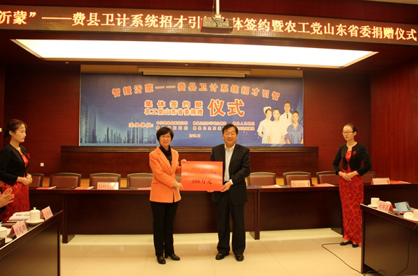 2015年12月13日,农工党山东省委会在费县新时代宾馆举行“智援沂蒙——费县医卫系统招才引智集体签约仪式暨农工党山东省委会健康山东——医药卫生关爱行动捐赠仪式”,10名农工党党员高层次专家被聘为费县发展顾问,并分别与相关单位签订协议。农工党山东省委会专职副主委吕善勇,临沂市委组织部副部长、市人才办主任李业荣,费县县委书记、县人大常委会主任程守田参加仪式并讲话。