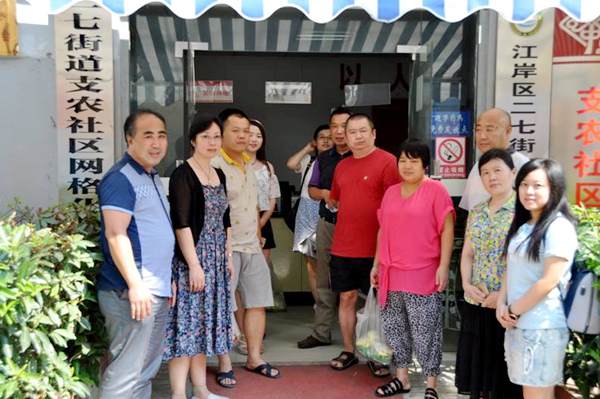 2016815日下午,农工党武汉市委会专职副主委韩禾兼秘书长带领市委会办公室、调研室、组织部、宣传部和社工部相关人员来到二七街支农社区开展“送清凉”防暑降温进社区活动,为社区15户贫困居民送去绿豆、冰糖等防暑降温物品。中共二七街书记林涛、街办主任桂勇等领导、市委会机关文明办和部分文明服务志愿者也参加了活动。(文明办  社工部)