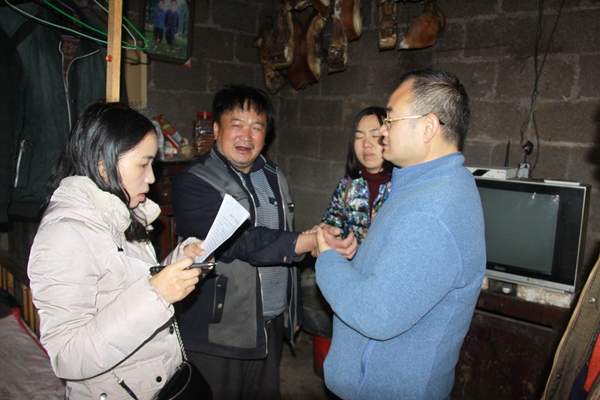 在长河村,杨鸿生带领大家趟泥水、翻灰堆(当地烧煤),挨家挨户对126户贫困户跟踪回访、入户调查,每到一户,大家都细致地开展工作,有的跟群众详细交谈,了解致贫原因、脱贫情况,询问健康扶贫等惠民政策落地实施情况;有的进一步采集完善调查问卷,有的现场为群众开展医疗服务,有的勘察环境、拍照取证,采民声、问民情、解民疾,出主意、想办法,一边监督一边济困,大家都是脱贫攻坚“调研员、监督员、宣讲员、战斗员”,大家心中都有一个共同的目标信念:帮助发现和改善工作中存在的问题和不足,助推当地党委政府打赢脱贫攻坚战。