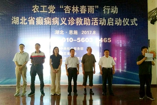 2017年8月27日上午,由农工党中央社会服务部、农工党湖北省委会主办,恩施土家族苗族自治州慈善总会、农工党恩施土家族苗族自治州委会承办的农工党“杏林春雨行动”癫痫病义诊救助活动在恩施市启动。中国初级保健基金会健康与教育基金管委会主任石光树、恩施州人民政府副州长高云正在启动仪式上致辞。农工党湖北省委会社会服务部部长王佳丽、农工党恩施州委会主委杨德华出席启动仪式。