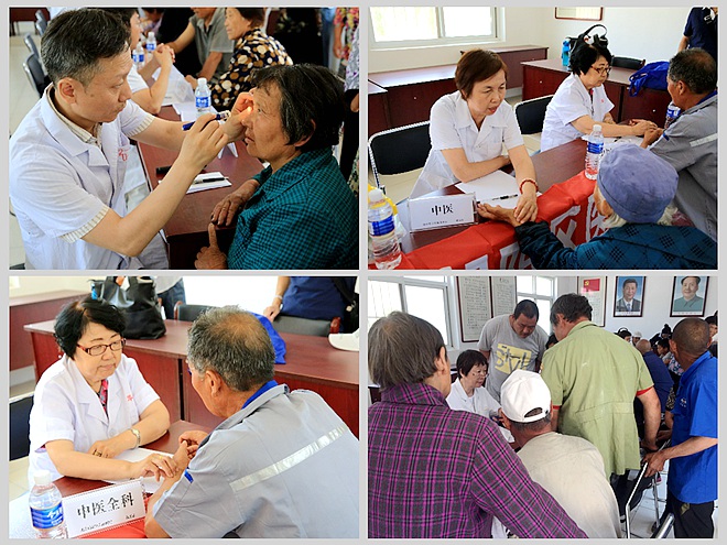 帮扶团队义诊活动在捐赠仪式后展开。本次帮扶团队聘请了北京积水潭医院、北京市朝阳医院等一些著名医院的主任、专家来给村民们进行义诊,义诊敷设了内科、外科、妇科、中医、眼科、口腔等科室。医生们耐心为村民们诊治、讲解。前来义诊的村民近100人。