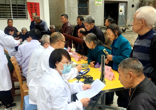 20181111日上午,农工党武夷山市委会组织了10名农工党医卫界的党员专家前往上梅乡岭山村开展健康义诊活动,将医疗卫生服务送到偏远山区群众家门口。