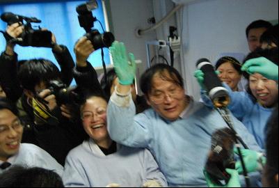 此时,内镜方面的专家正在对这头名为“江波”的海豚进行会诊手术,她的要求被婉言拒绝。1月20日清晨7点多钟,海底世界的领导联系吴萍,告诉她从昨晚8点开始至凌晨的专家会诊手术均告失败,想请二附院的专家给予援救。吴萍立刻通知同为农工党员的消化医学中心范志宁主任,并接受了援救请求。