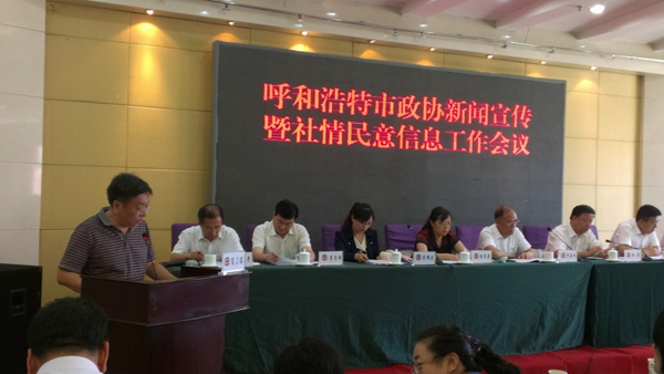 2014年6月24日,呼和浩特市政协新闻宣传暨社情民意信息工作会在内蒙古军区招待所召开。呼和浩特市政协主席贾英祥,副主席银孝、陈曼莉出席会议。各旗县区政协、呼和浩特市政协各参加单位、各专委会负责人以及相关人员约90人参加会议。