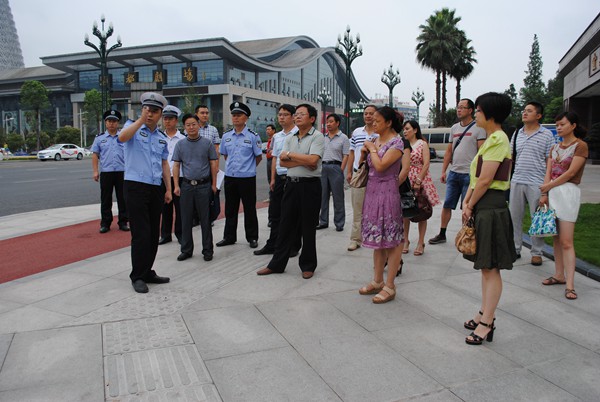 参会人员一行先乘车到宜宾主要交通节点查看了交通信号灯建设、交通渠化情况,到人民公园停车场查看了停车场建设情况,在长江大道查看了港湾式公交车站建设的情况,市交警支队秩序大队负责人沿途就交通设施的实施情况进行了详细介绍。