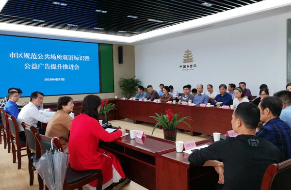 4月22日下午,市创建办根据市委主要领导的批示精神,组织县(市区)、政府职能部门和行业协会等27家单位召开市区规范公共场所双语标识暨公益广告提升推进会。
