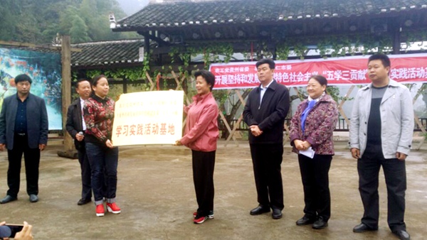 调研期间,农工党贵州省委会、农工党铜仁市委会还共同在石阡县坪山乡尧上仡佬族民族村举行了“坚持和发展中国特色社会主义-五学三贡献”学习实践活动基地挂牌仪式。