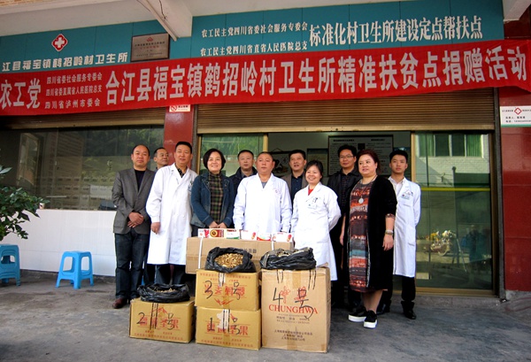 2015年11月7日上午,农工党四川省委会社会服务专委会、省委直属省人民医院总支在合江县福宝镇开展鹤招岭村卫生所精准扶贫点捐赠活动。农工党四川省委会社会服务专委会主任、省委会直属省人民医院总支主委刘玉萍,农工党四川省委会社会服务处处长汪治泉,农工党泸州市委会驻会副主委关键出席了活动。合江县政协主席王亚容应邀出席了活动。