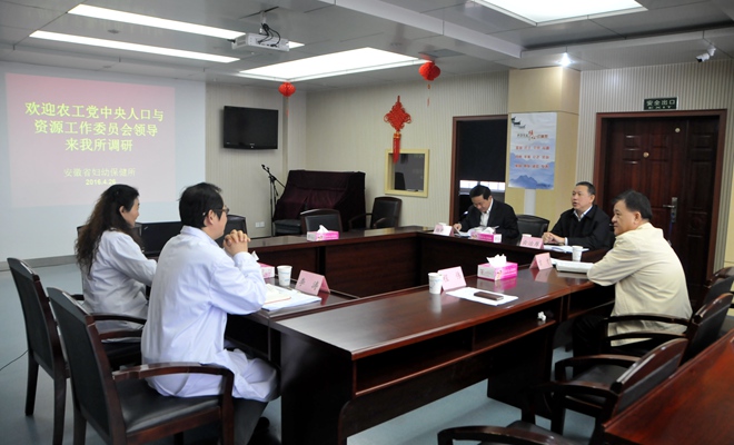 2016年4月26日,农工党中央人口与资源工作委员会主任、内蒙古区委会副主委云治厚,农工党中央人口与资源工作委员会副主任、安徽省粮食局副局长杨增权一行,来到安徽省妇幼保健所开展专题调研。安徽省政协副秘书长、农工党安徽省委会专职副主委方才陪同调研。