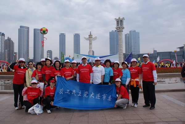 图为农工党大连市委妇女工作委员会委员的徒步活动
