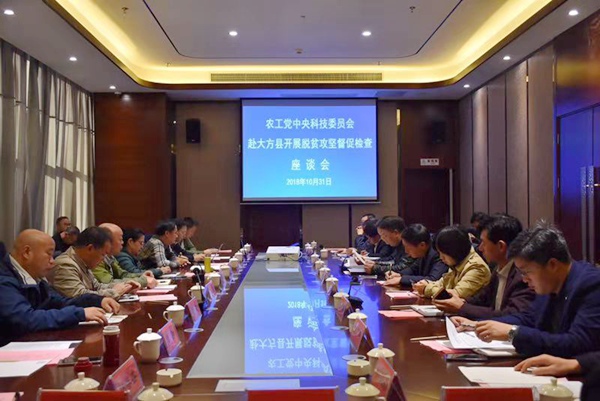 2018年10月29日至31日,国家中医药管理局规划财务司司长、农工党中央科技委主任苏钢强带领农工党中央科技委一行赴贵州省大方县开展中药材产业扶贫调研,并在大方县羊场镇陇公村开展定点扶贫督促检查工作。