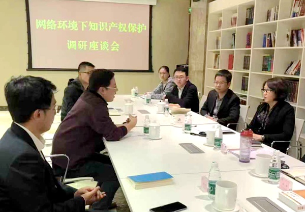 调研组一行与北京知识产权法院审判监督庭张晓霞庭长及4位办案一线法官进行了专题座谈。双方围绕网络环境下的知识产权保护问题进行了深入交流,对当前司法实践中遇到的相关热点难点问题进行了深度沟通,为进一步完善我国知识产权领域相关法律制度提出了务实管用的意见建议。