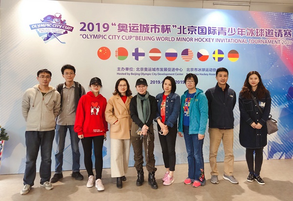 2019年4月29日下午,农工党北京市朝阳区青年工作委员会组织青年党员观看“2019奥运城市杯”北京国际青少年冰球邀请赛。农工党朝阳区青工委主任丛莉以及部分青年党员一同参加活动并观看了北京队和拉脱维亚队的比赛。