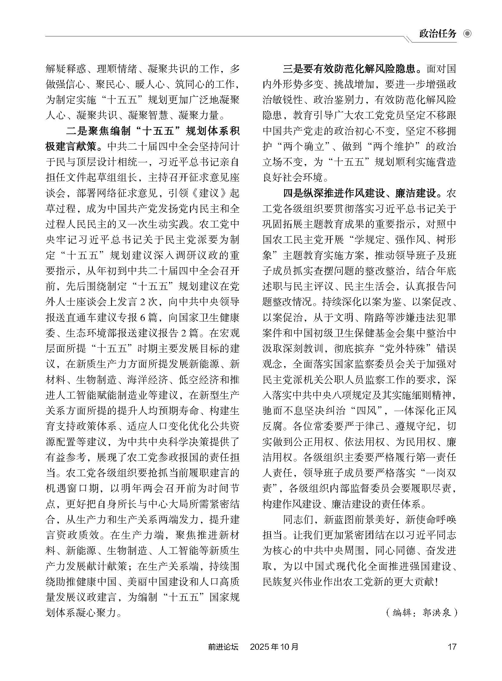 ① 凡本网注明“来源:农工党中央”的所有文字、图片和音视频稿件,版权均属农工党中央和农工党中央网站所有,任何媒体、网站或个人如有需要链接转载或其它 方式调用者,请注明摘自“农工党中央网站”或相关字样。