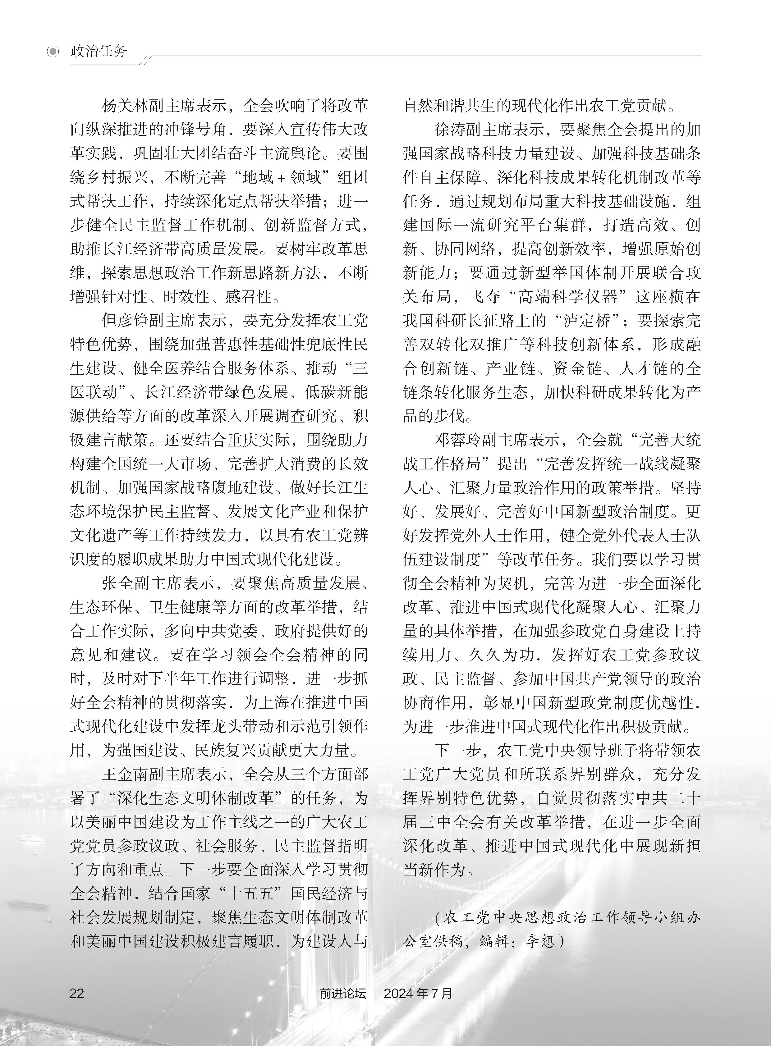 ① 凡本网注明“来源:农工党中央”的所有文字、图片和音视频稿件,版权均属农工党中央和农工党中央网站所有,任何媒体、网站或个人如有需要链接转载或其它 方式调用者,请注明摘自“农工党中央网站”或相关字样。