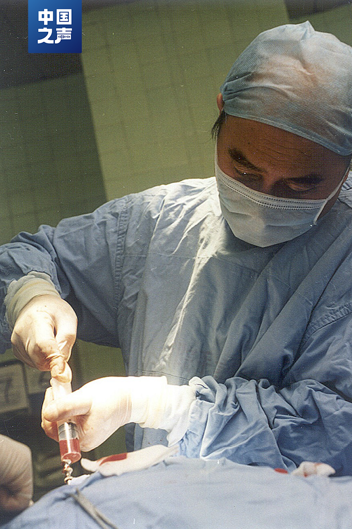 1981年,陆道培在采集骨髓,以进行中国首例异基因骨髓移植