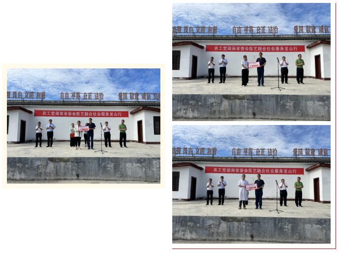 8月26日-27日,农工党湖南省委会组织医疗专家、艺术家党员前往湘西州龙山县农车镇花桥村开展医艺融合社会服务龙山行活动。农工党湖南省委会专职副主委蒋秋桃,中共湘西州委常委、统战部部长吴凌频,湘西州政府党组成员、副州长马碧,农工党湖南省委会社会服务处处长罗创,中共龙山县委副书记黎新松,县委常委、统战部部长向怿文,龙山县副县长、公安局局长吴昱杰出席了活动。马碧主持活动。