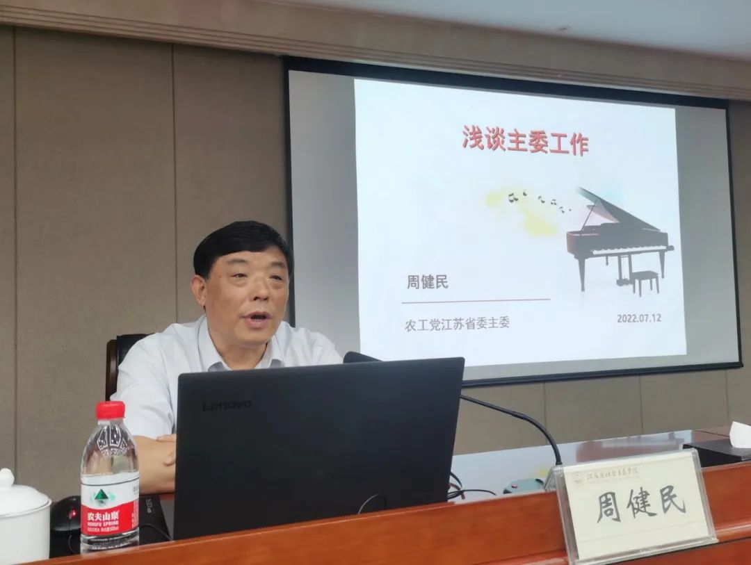 7月13日,省政协副主席、农工党江苏省委会主委周健民为江苏省委统战部举办的全省民主党派市级组织新一届领导班子政治交接专题培训班授课。