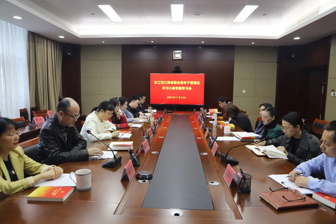 11月15日,农工党江西省委会青年干部理论学习小组在机关会议室举办专题学习会,传达学习习近平总书记在二十届中共中央政治局第一次集体学习时的重要讲话精神,深入学习中共二十大精神。