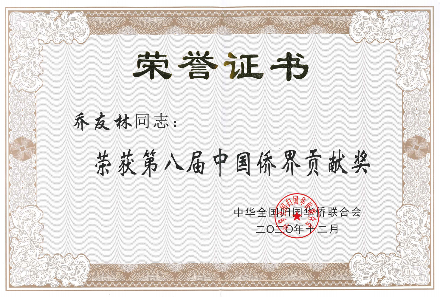 12月1日,新华社发布消息,中国侨联第八届新侨创新创业成果交流活动在京举行,活动当日还颁发了第八届“中国侨界贡献奖”,本届“中国侨界贡献奖”共表彰获奖者125名,其中一等奖59名,二等奖66名。农工党中央教育委副主任、中国医学科学院/北京协和医学院肿瘤医院流行病学研究室乔友林教授在此次表彰中荣获二等奖。据悉,乔友林是中国医学科学院/北京协和医学院所在的中央和国家机关界别中唯一的医药界获奖人士。