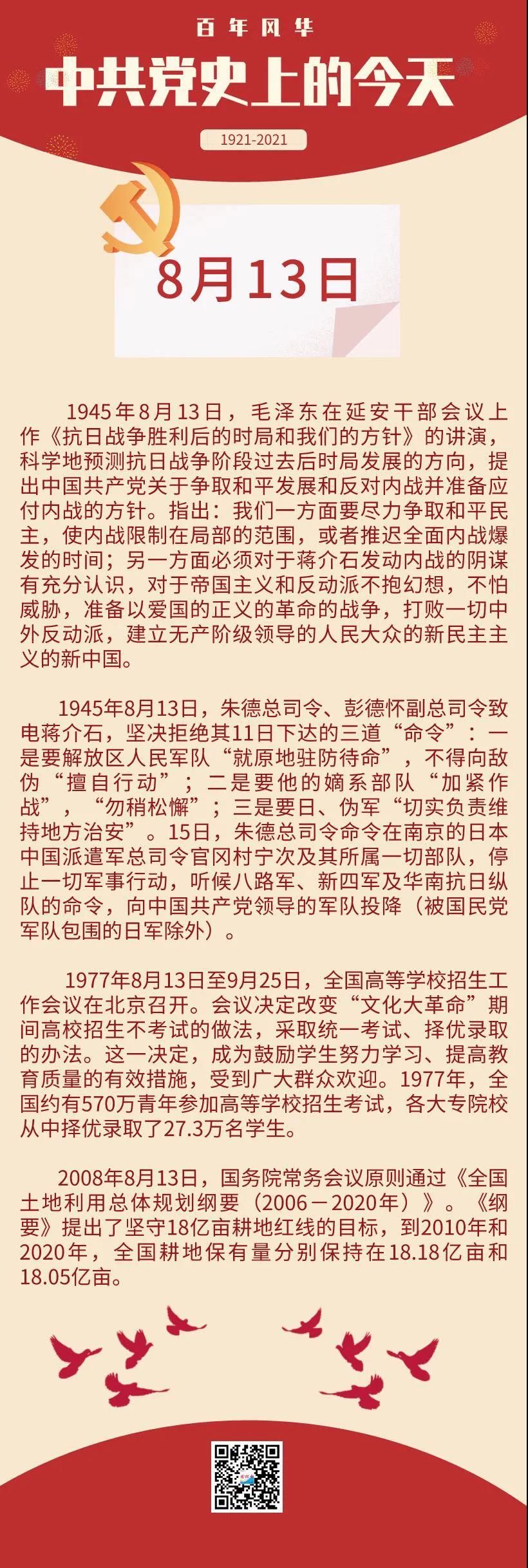 百年风华•中共党史上的今天(8月13日)