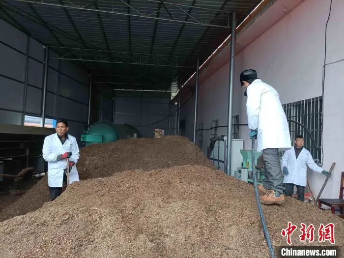 大方县羊场镇新田村村民在制作菌棒原材料。石小杰 摄