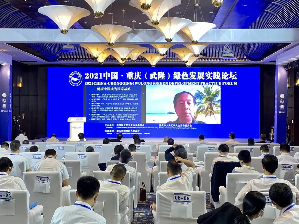 8月13日上午,由农工党中央、重庆市人大常委会联合主办的2021中国·重庆(武隆)绿色发展实践论坛以“线上+线下”相结合的方式开幕。全国人大常委会副委员长、农工党中央主席、中国红十字会会长陈竺在线发表主旨演讲并宣布论坛开幕;全国人大常委会委员、农工党中央专职副主席杨震,全国政协常委、民族和宗教委员会主任王伟光在线出席开幕式并分别致辞;重庆市人大常委会主任张轩在武隆现场出席开幕式并讲话,全国人大常委、重庆市人大常委会副主任、农工党重庆市委会主委杜黎明主持开幕式。
