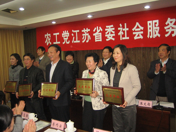 各市委就2006年换届以来农工组织和广大党员社会服务工作所取得的成绩,通过多媒体以图文并茂的形式进行大会展示交流,亮点频出,成绩斐然:南京市委通过成员招商引资、注册人民币18.3亿,美圆2.6753亿,被授予南京市统一战线“凝聚力工程”先进集体光荣称号;无锡市委在全市各民主党派率先在江南大学测量“春雨助学金”多年来不间断捐助数十万元,受助100余名贫困学生;连云港市委积极开展法律援助、心理咨询为缓和社会矛盾和缓解大众心理压力做出了贡献,得到社会各界好评,受到中共市委表彰;泰州市委切实搞好定点乡镇卫生院的帮扶工作;淮安市委尽心打造模范和谐社区;扬州市委“中国环境与健康宣传周”活动有声有色,受到中国组委会表彰;南通市委党员克服家庭困难,远赴万里到新疆,为边疆的诊疗、科研、和教学积极贡献,为民族团结奉献才智;苏州市老党员张寿华14年如一日地联系发动社会力量捐资助学对象达390人,总资助金额累计396万元;全国人大代表、常州市党员、农民女企业家周银妹热心慈善事业,近年来认养孤儿50名,慈善捐赠达1200余万元等等。一个个感动故事、一串串耀眼的数据,记录着江苏农工党组织和广大党员社会服务的辉煌。