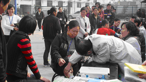 美运鞋业公司地处市郊,公司内职工得知有医疗专家来此义诊时,都早早赶来现场等候专家们的到来。参与此次义诊服务是农工党鹰潭市委会外科、内科、骨科、妇科和眼科方面的知名专家,他们热情仔细地为职工提供咨询和诊疗服务。在2个多小时里,咨询义诊达200余人次,免费发放药品1200余元。职工们高高兴兴而来,欢欢喜喜而去。在义诊服务的同时,农工党环保科技专家还通过宣传画板普及低碳环保科学知识,宣传绿色经济增长和低碳健康生活,发放宣传材料200余份,充分体现了今年“国际科学与和平周”的“绿色、低碳、健康、和谐”主题。