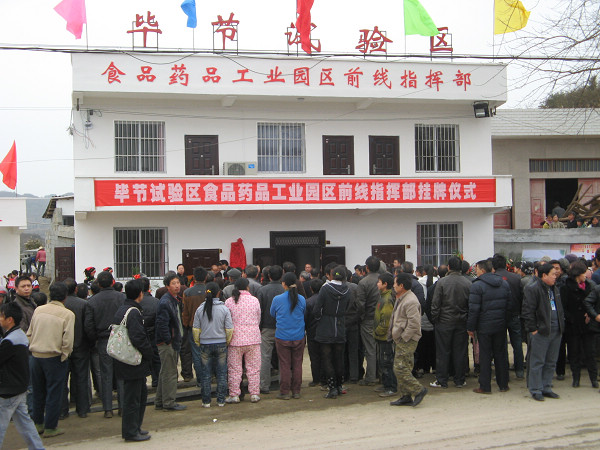 12月7日,大方县东关乡举行了隆重的“毕节试验区食品药品工业园区前线指挥部” 挂牌仪式。副省长、农工党省委主委谢庆生、中共大方县委书记,县长卢林、常务副县长张瀚时、农工党省委秘书长黄惠玲、农工党毕节地工委主委辜康乐、地区行署,大方县直属相关部门和企业代表出席挂牌仪式。