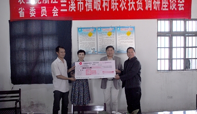 10月16日,省委会社会服务部与杭州前进中医门诊部的同志来到兰溪横畈村,向当地捐赠10万元,主要用于中药村生产基地的后续发展。诸葛镇镇长对农工党省委会持之以恒的帮扶以及省委会在帮扶横畈村过程中对周边乡镇的带动作用表示感谢。(农工党浙江省委会)