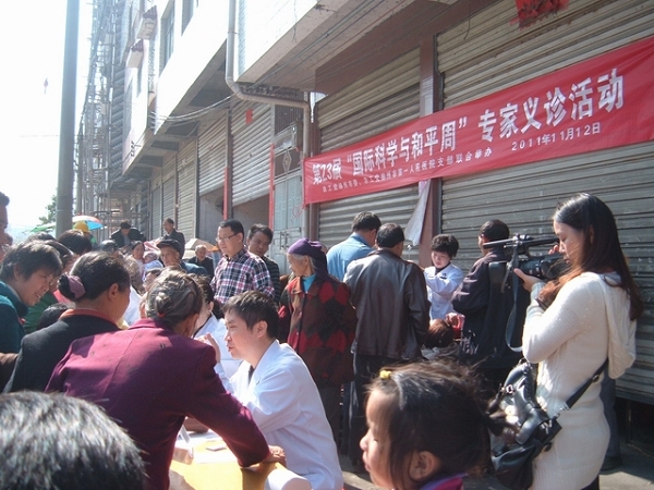 农工党郴州市委按照农工党中央和农工党湖南省委《关于开展第二十三届“国际科学与和平周”活动的通知》要求,突出本届活动提出的 “弘扬科学精神,承担社会责任,促进和谐发展,共建创新型国家”主题,结合本地实际,充分发挥农工党以医药卫生界为主的人才优势,与农工党郴州市第一人民医院支部联合,组织郴州市第一人民医院、湘南学院附属医院、郴州市第三人民医院、郴州市第四人民医院党内的医学博士、医卫专家20多人,由农工党郴州市委主委熊波和专职副主委袁光校带队,于11月12日,在郴州市桂阳县太和乡开展第二十三届“国际科学与和平周”专家义诊活动。
