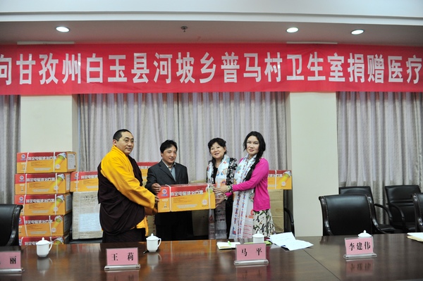 甘孜州位于四川盆地与青藏高原的过渡带上的横断山脉中段,地理位置特殊,岭谷高差大,平均海拔为3390米。河坡乡是四川省甘孜藏族自治州白玉县辖乡,位于县境西北部,距县城36.4公里,与西藏自治区隔金沙江相望。面积288平方公里,人口0.3万,辖普马等16个村委会。甘孜州藏传伏藏文化协会会长仲巴仁波切活佛,客观详实地介绍了川藏甘孜州藏民所面临的医疗困难,以及受捐单位甘孜州白玉县河坡乡普马村卫生室简陋的医疗环境,并对农工党沈阳市委会表示诚挚谢意。