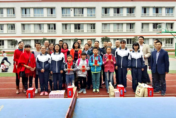 东坡区支部党员们走进东坡区太和镇中心小学,看望慰问了结对帮扶5名农村留守儿童,向他们发放了助学金,赠送了书包、文具等生活学习体育用具,共计6700元。农工党党员、来自眉山一中教师伍志攀组织高一八班的全体同学捐款700元,同时也委派了4名班委成员参加了捐赠活动。