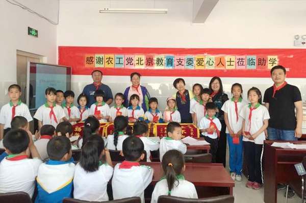 2017年5月26日,农工党北京市海淀区委会教育支部的薛峰(北京航空航天大学教授)、孙瑞华(北京社会主义学院教授)、张健(中华女子学院教授)、李红(北京航空航天大学教授)四位老师,代表支部六十多位党员以及三十多位社会各界朋友,来到河北省怀来县外井沟中心校开展捐资助学活动。