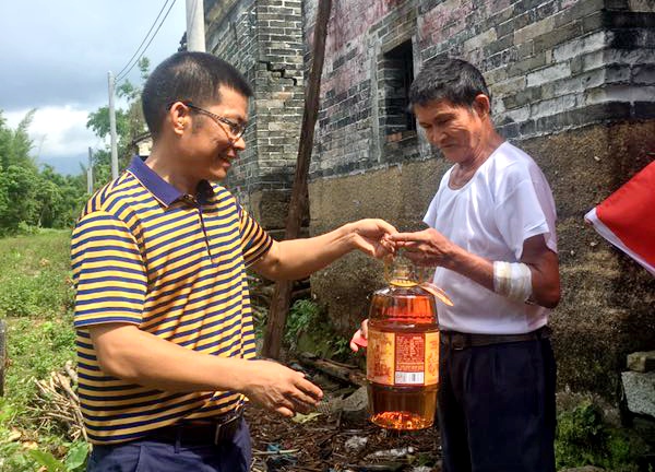 2017年6月25日,农工党阳西县支部委员会全体党员在主委李绍其、副主委张德俊、刘奕平带领下,顶着烈日,携着米、油还有慰问金来到阳西县塘口镇热水村委会,走访慰问贫困孤寡老人,为老人们送去了生活用品和问候。