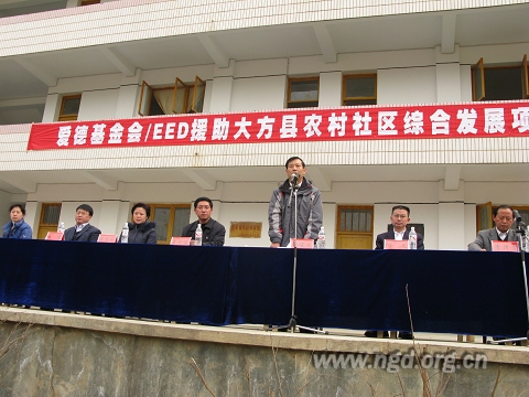 刘峻杰副部长在启动仪式上的讲话中谈到:近年来,农工民主党与爱德基金会合作,先后在星宿乡开展了“1+1”滚动养牛项目和大坝村麻窝组社区发展项目。今年,在农工民主党中央汪纪戎副主席的关心和社会服务部的积极协调下与爱德基金会再次协作资助大山乡开展社区发展综合项目,这是农工党中央社会服务部、爱德基金会和大方县委县政府深入贯彻落实科学发展观、以人为本、关注民生的又一举措,希望县、乡两级党委和政府以及相关部门高度重视,认真组织管理,严格跟踪监督,保质保量按时完成项目,我们中央社会服务部、贵州省委会、地区工委也将全程跟踪监督和服务。同时,为实施好“大山乡农村社区综合发展项目”,刘峻杰副部长对县政府、大山乡党委政府和有关部门提出了要求:希望该项目在县委县政府的领导下,统一思想,团结一致,科学管理,严格监督,把这件实事办好,让县委放心、群众满意。