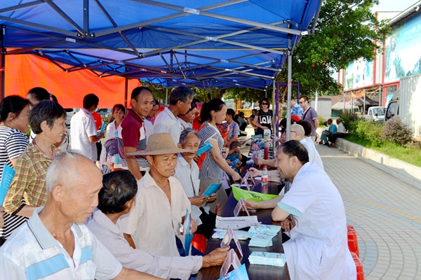 上午八点半,来自内科、外科、口腔科、儿科等科室的十余位医疗专家们一到现场,前来诊疗咨询的群众便围了上来。专家们亲切、热情地为群众听诊、测量血压、询问病症、免费发放药品,并向村民对一些常见病、多发病的预防和治疗进行详细地讲解。虽然天气炎热,酷暑难当,但是专家们始终面带微笑,耐心细致地为群众解惑答疑。