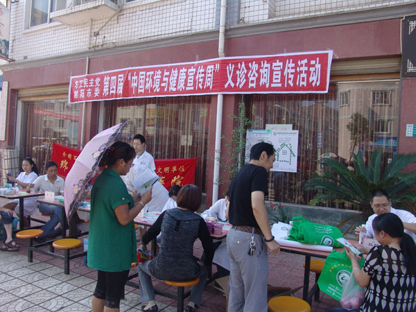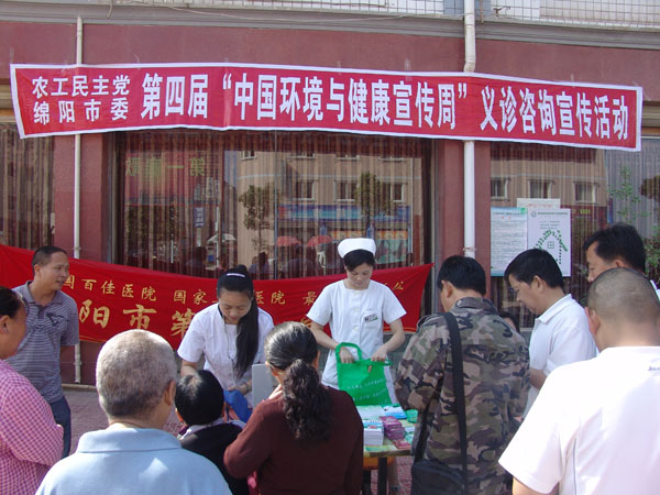 2011年6月2日上午9:00至12:00,农工党绵阳市委在绵阳市城南新区小枧开展了第四届“环境与健康宣传周”义诊咨询宣传活动。绵阳市政协副主席、农工党市委主委沈其霖,秘书长赵朝晖,农工党游仙总支主委刘刚以及农工党党员医疗专家马勋龙、蔡波等共14人参加了此次活动。