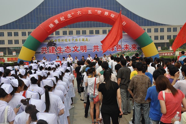 聊城市副市长侯军,市人大副主任、农工党聊城市筹委主委孙菁,市政协副主席潘延红等市领导出席了宣传启动仪式。农工党聊城市筹委会、聊城市职业技术学院护理学院、市热电厂等单位的党员、学生、职工共400多人参加了本次活动。在活动中,农工党聊城市筹委会住市区的全体党员,向广场周围的人民群众发放了题目为:《环保在我身边,从我做起!》《低碳经济低碳生活-中国环境与健康宣传周》《环保知识问答》宣传材料6000份,以及《高血压防治手册》100余册。