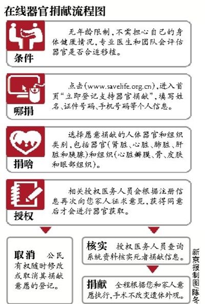 由国家卫计委、“国际扶轮3450地区”合作实施的“施予受”器官捐献志愿者登记网站(www.savelife.org.cn)正式开通。如今每位中国公民都可根据自己的意愿在线登记自愿捐献器官,并有权随时修改或取消捐献登记。